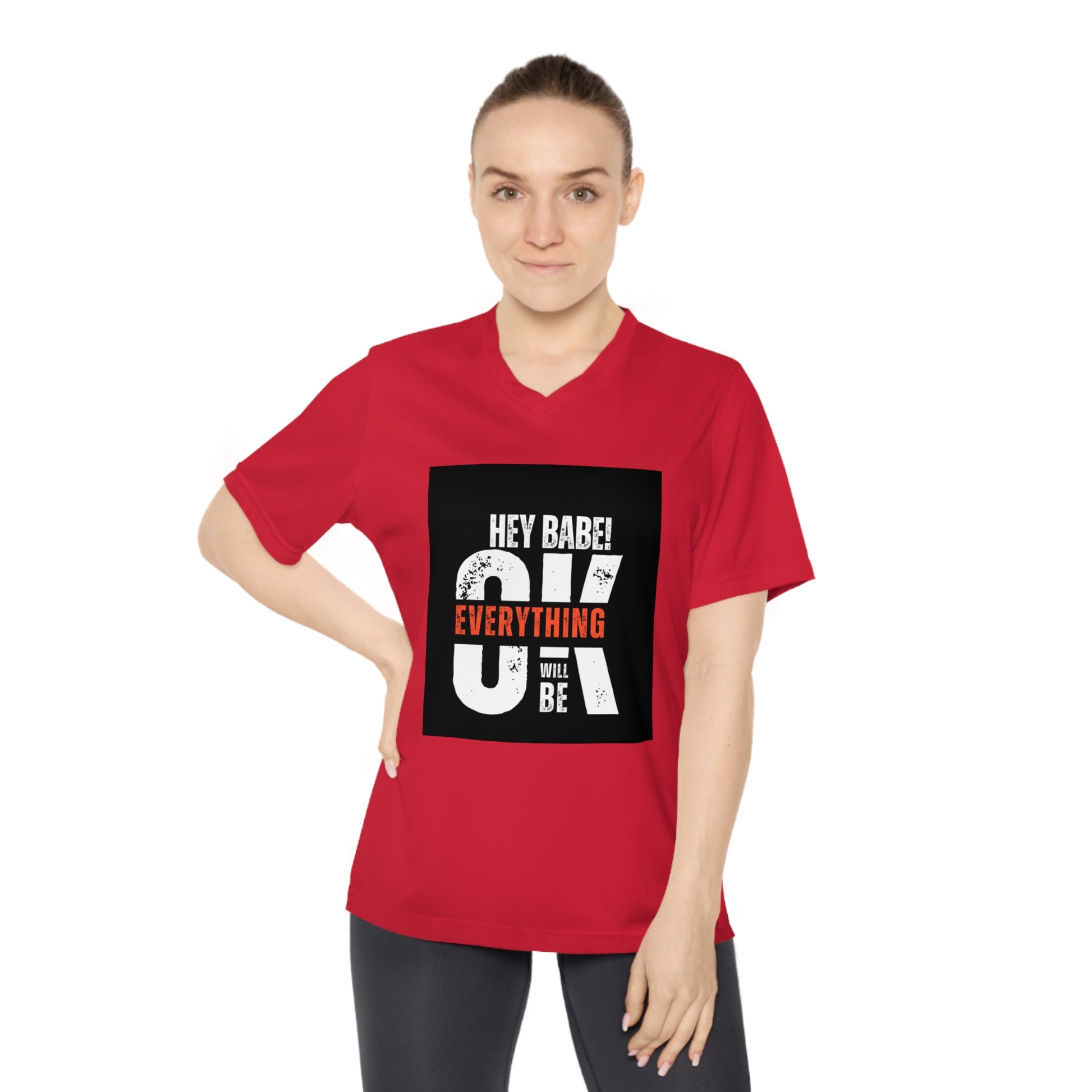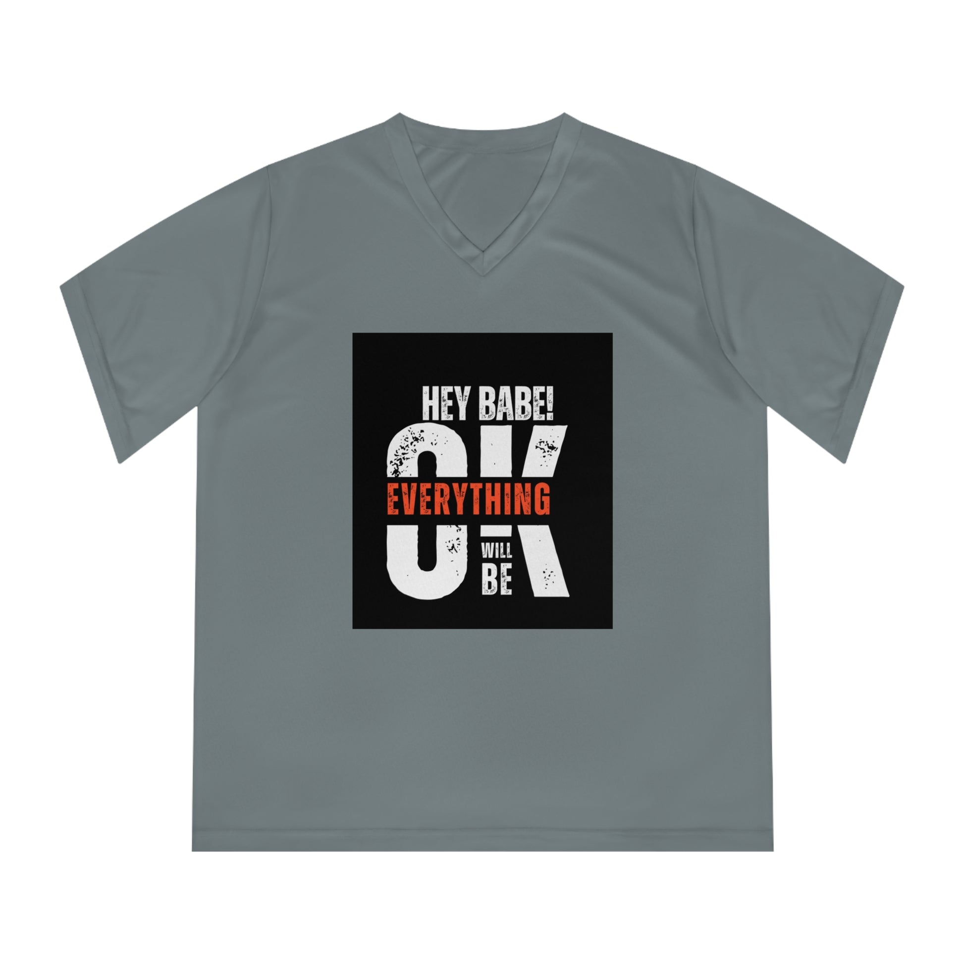 Hey Babe! 24 Everything Will Be OK V-Neck Tee — Freedom Graphic Women's Performance Shirt