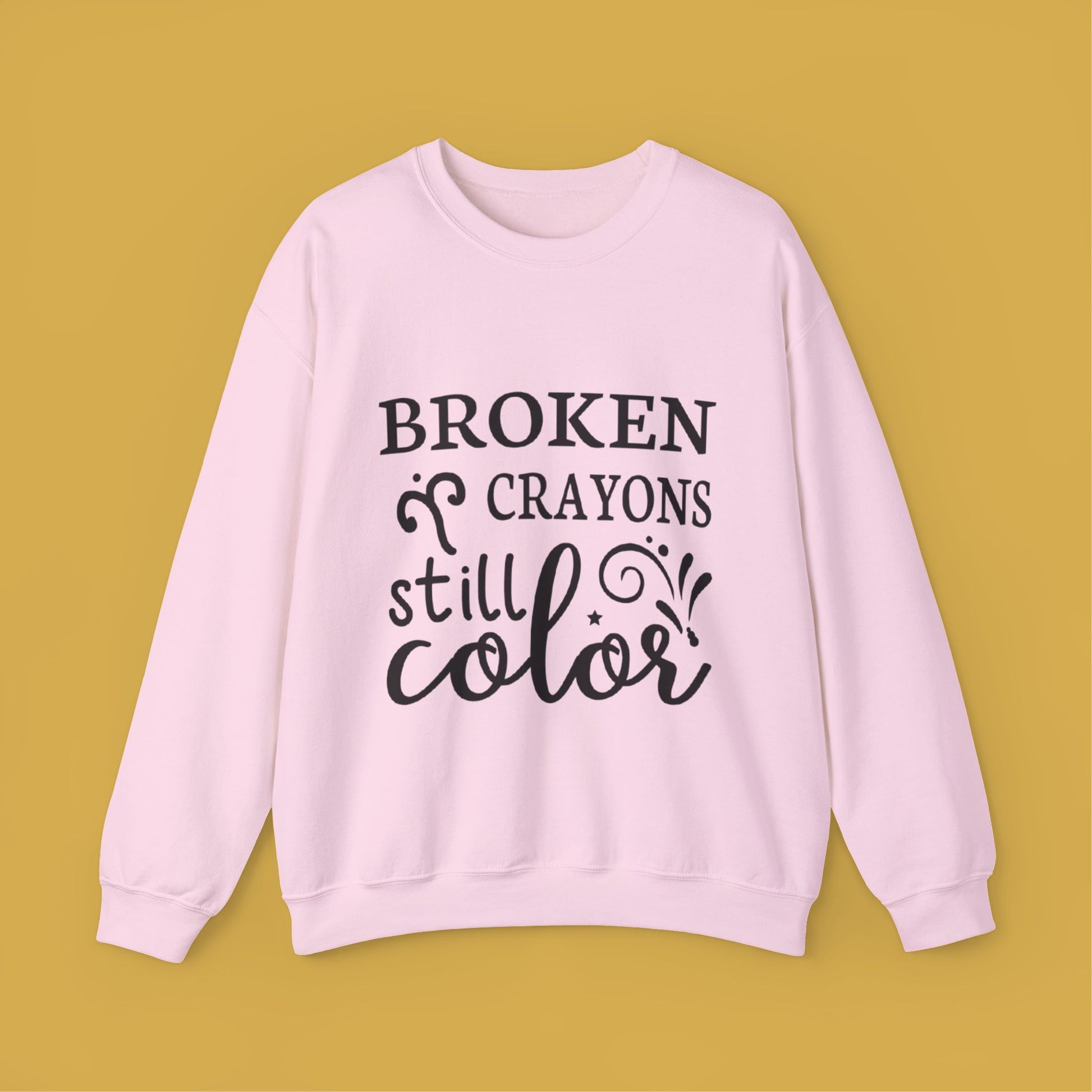 Inspirational Crewneck Sweatshirt - "Broken Crayons Still Color"